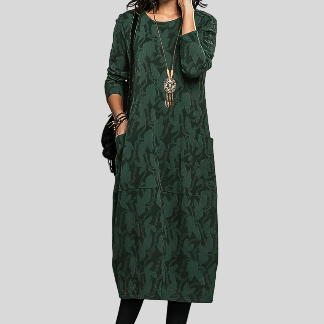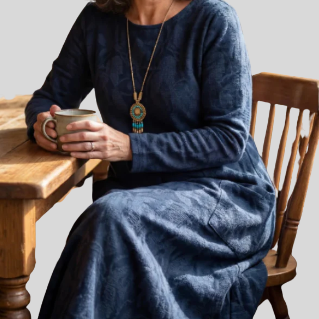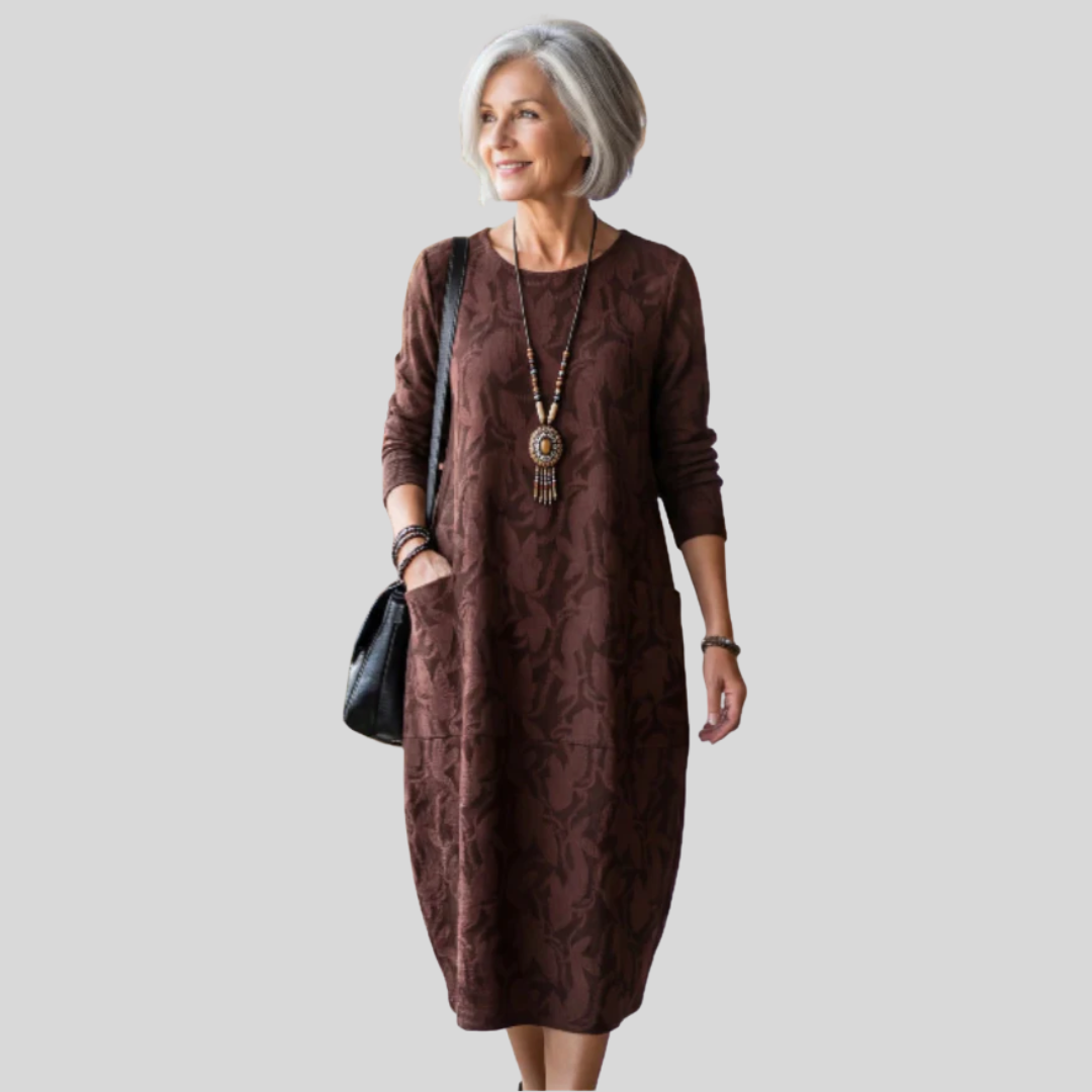 The Solveig™ | Textured Patterned Midi Dress is made for women who value comfort without sacrificing style. Pair it with boots, flats, or layered accessories for a refined yet relaxed look you’ll reach for again and again.